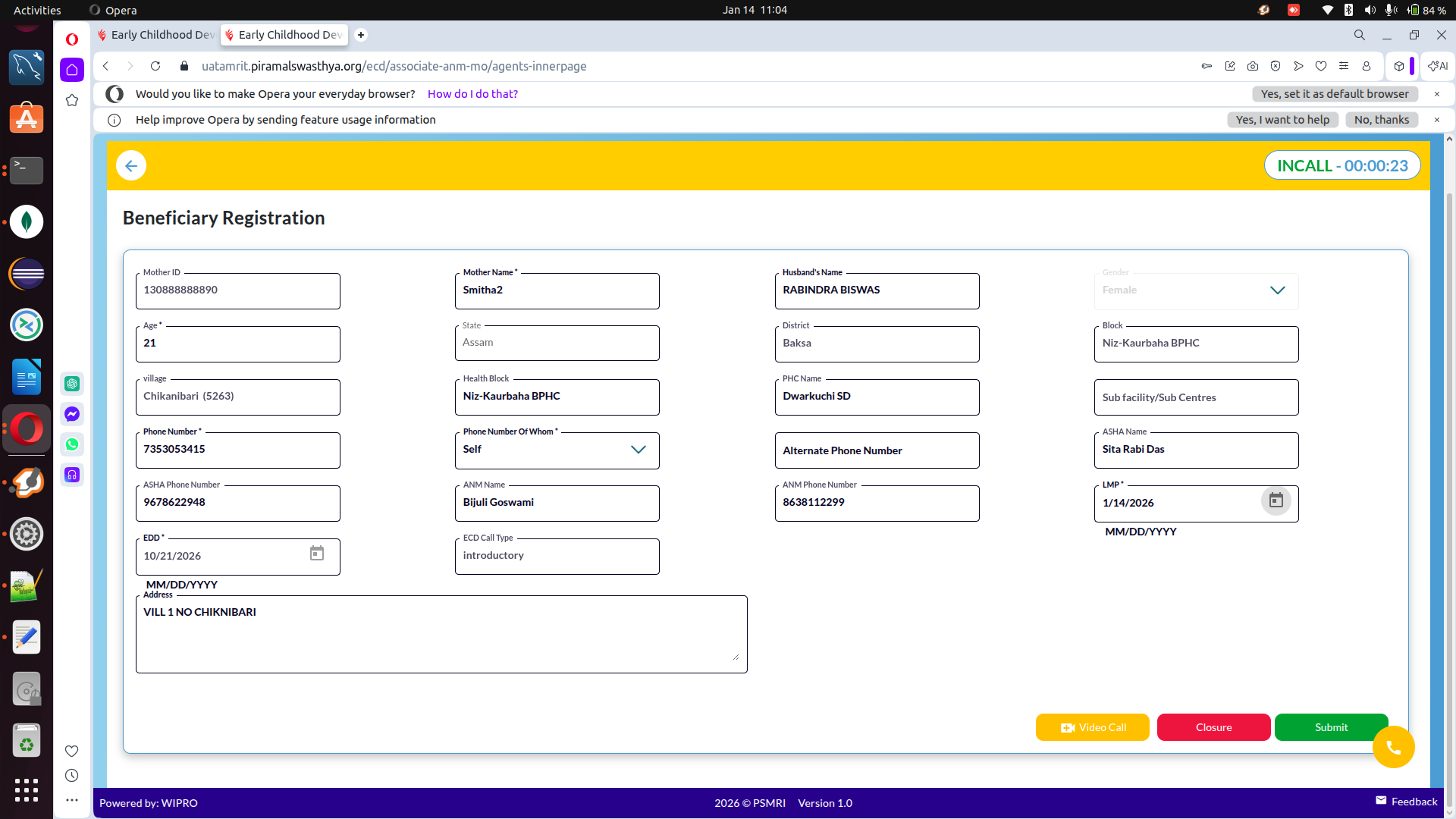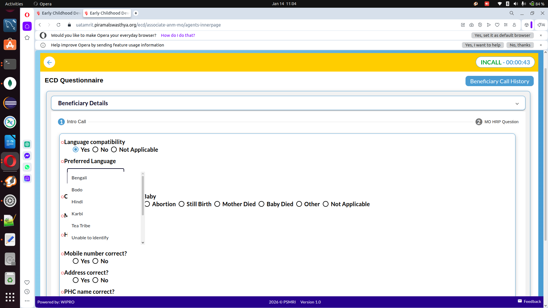 During the call closure process, the system enforced a preferred language validation between the Associate and the Beneficiary: